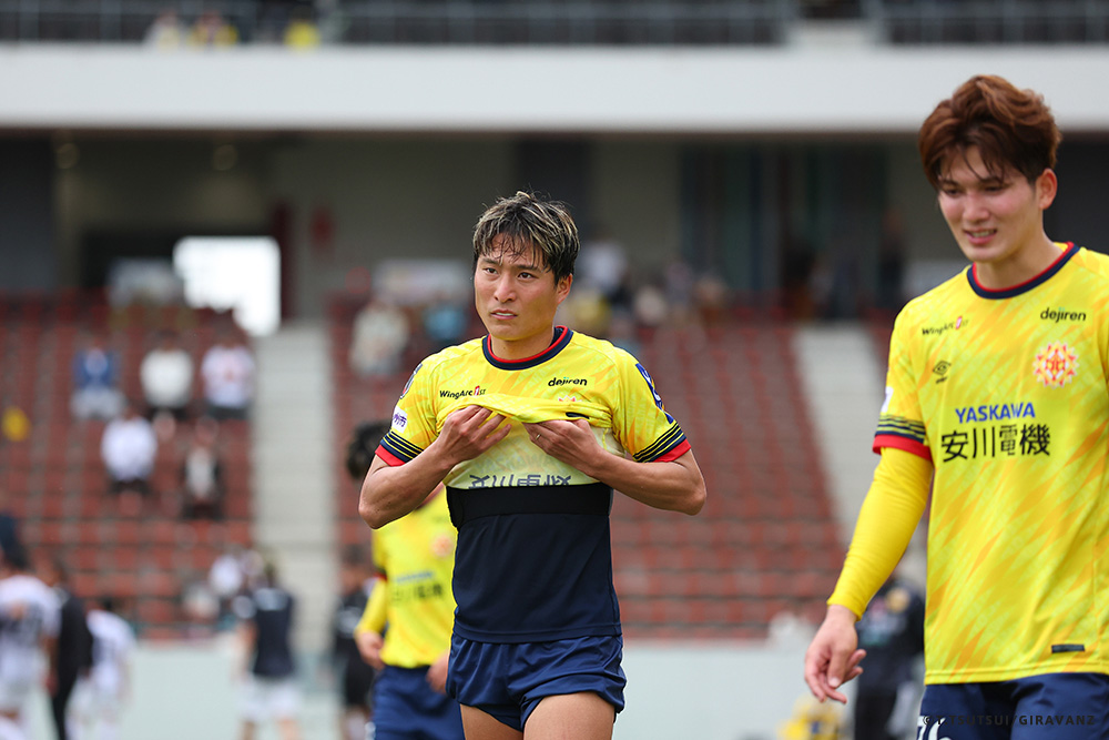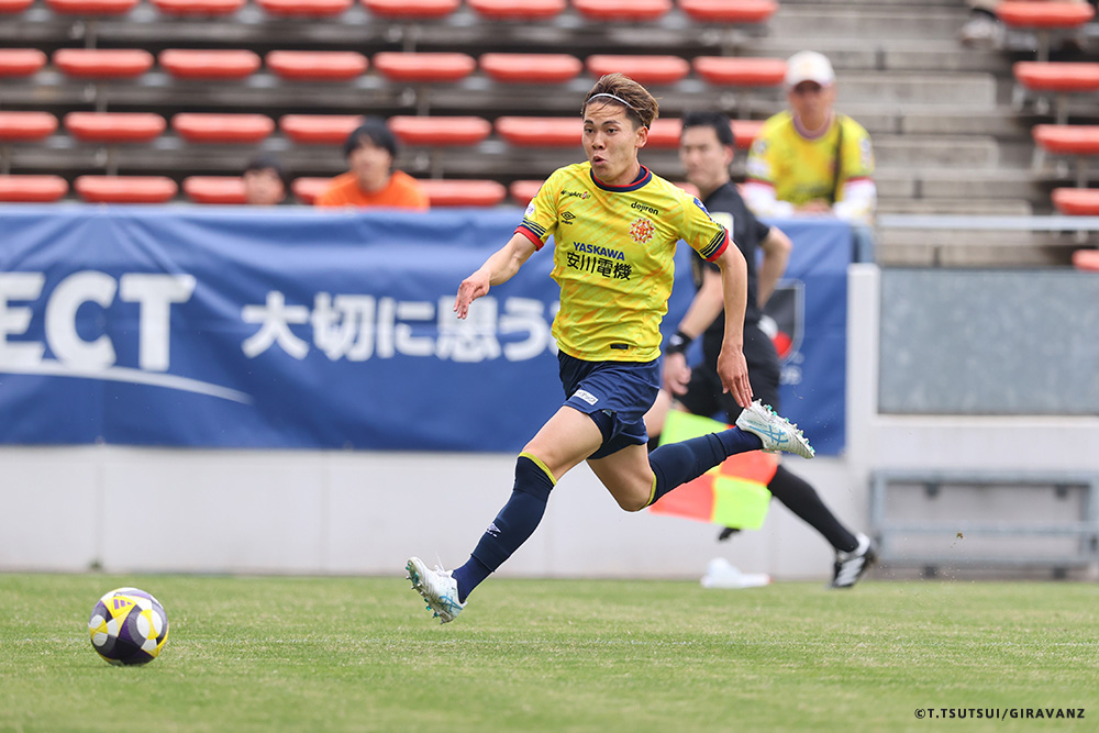 A:頭で決めたのは高校3年生の夏以来です。自分が樺山選手にパスを出しましたが、ボランチがゴール前に一枚かかわることでゴール前の厚みが増すと考えて入っていきました。樺山選手と目が合ったわけではありませんが、あの蹴り方とボールの軌道は自分の中でイメージができていました。絶対にボールが来ると思ったので、中に入っていきました。