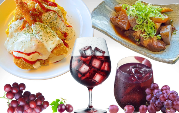 【金沢】を喰らいつくせ!トロトロ卵のオムライスに海老・魚フライをトッピングした名物「ハントンライス」をはじめ、柔らかく煮込んだ牛スジ、大根、こんにゃくでビールが進む「牛スジ煮込み 600円」ほか「濃厚ぶどうジュース500円」「赤ワイン700円 大1,000円」もあります。