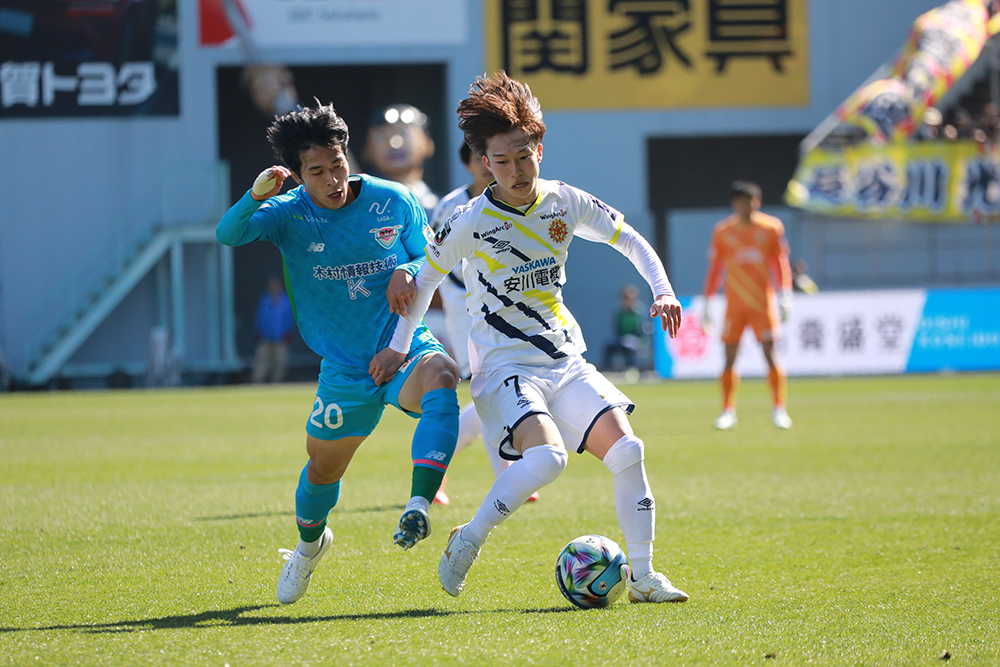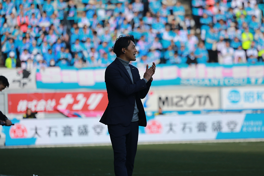 A:ワントップに塩浜選手が入ることでフレキシブルに降りてきたり、西澤選手との関わりをケアできない中から外に振られてしまう場面がありました。(鳥栖さんの)今日のボールの握り方は今までの5試合とは少し違っていたと思います。システムを3枚に戻したのが前節からだと思いますが、それまでは4枚でやっていて、サイドバックが内側に入って3枚可変していく形を取っていたので、その中で今までの5試合とは少し違った動かし方をしてきたので、少し後手に回ってしまったと思います。話しながら修正して対応してくれたので、そこに手応えは感じていますが、いい守備からいい攻撃へというところで言うと、相手の方がワンテンポ早く切り替えていたり、もう一歩深く踏み込んでいたと思うので、その辺は見習ってやっていかなければいけません。試合前に選手たちに伝えましたが、「今は結果が出ていないことで半歩下がってしまったり、ワンテンポ遅れてしまったりしているのではないか」という話をしました。その半歩を頑張って一歩前に出られるかどうかが今のチームには必要なんじゃないかと。後半は、その半歩をよく頑張ってくれたと思いますし、抑えるべきところはしっかり抑えてくれたと思います。ただ、そこからいい攻撃につなげられなかったところは、また次の課題としてやっていきたいと思います。
