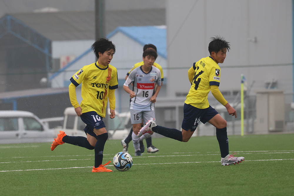 大会名/Jユースカップ第1節【場所】三菱ケミカルチャレンジ広場【日時】 3月24日(日)14:00 キックオフ【試合結果】 ギラヴァンツ北九州 3(1-1, 2-2)3 V・ファーレン長崎【得点者】星山*2、春本