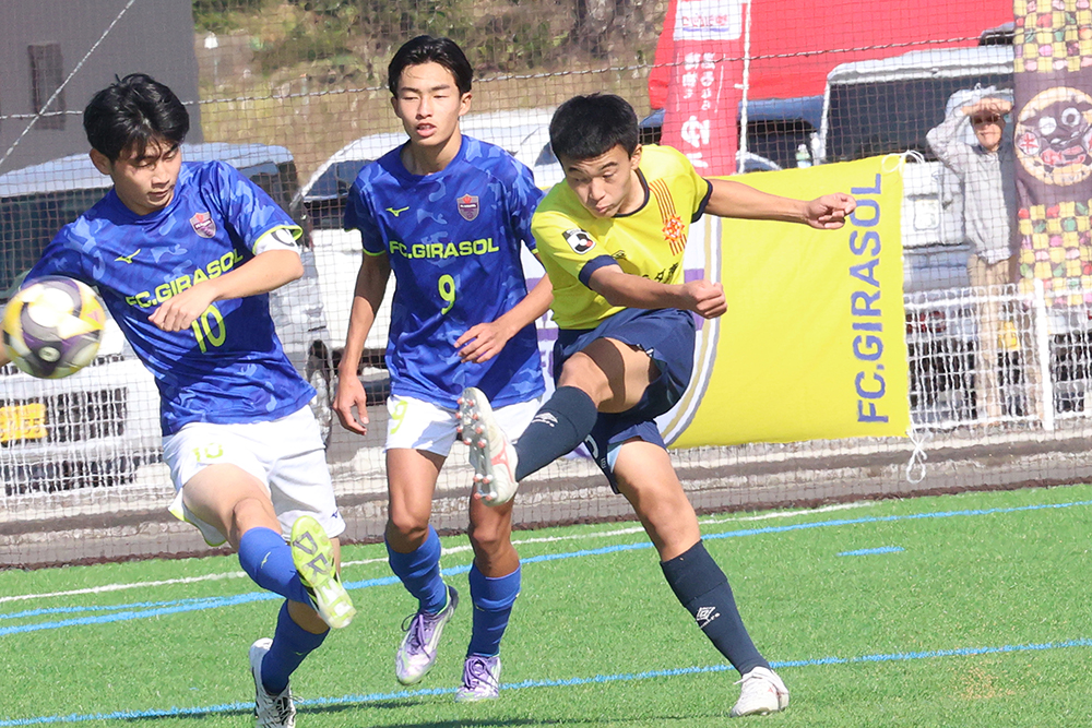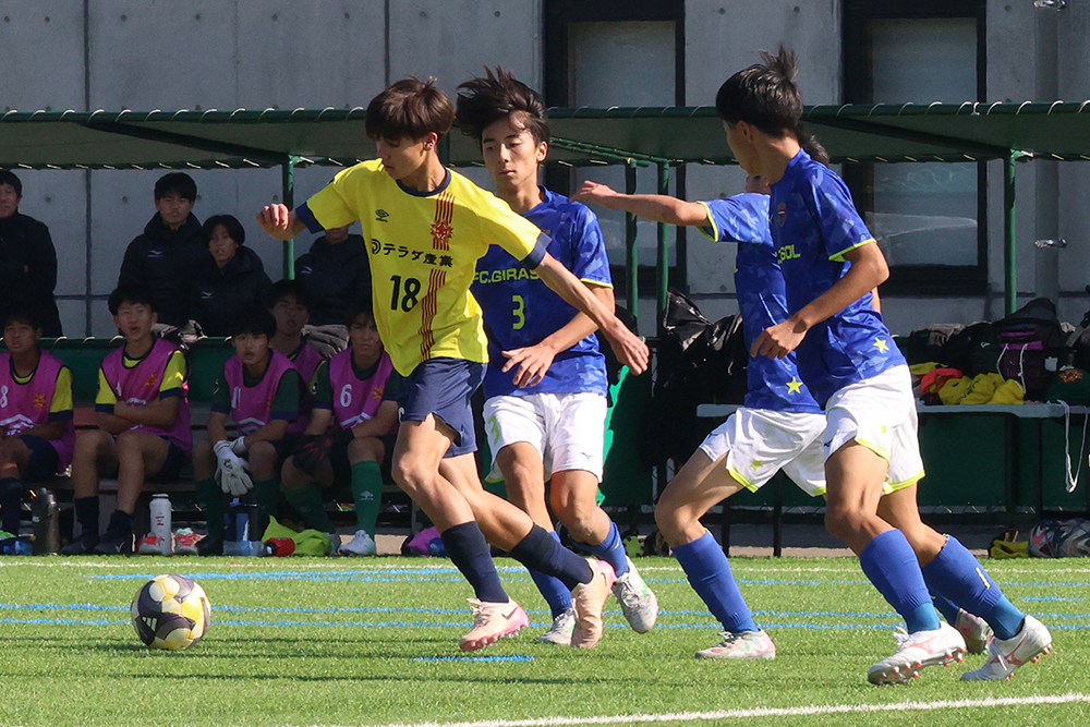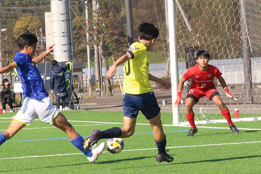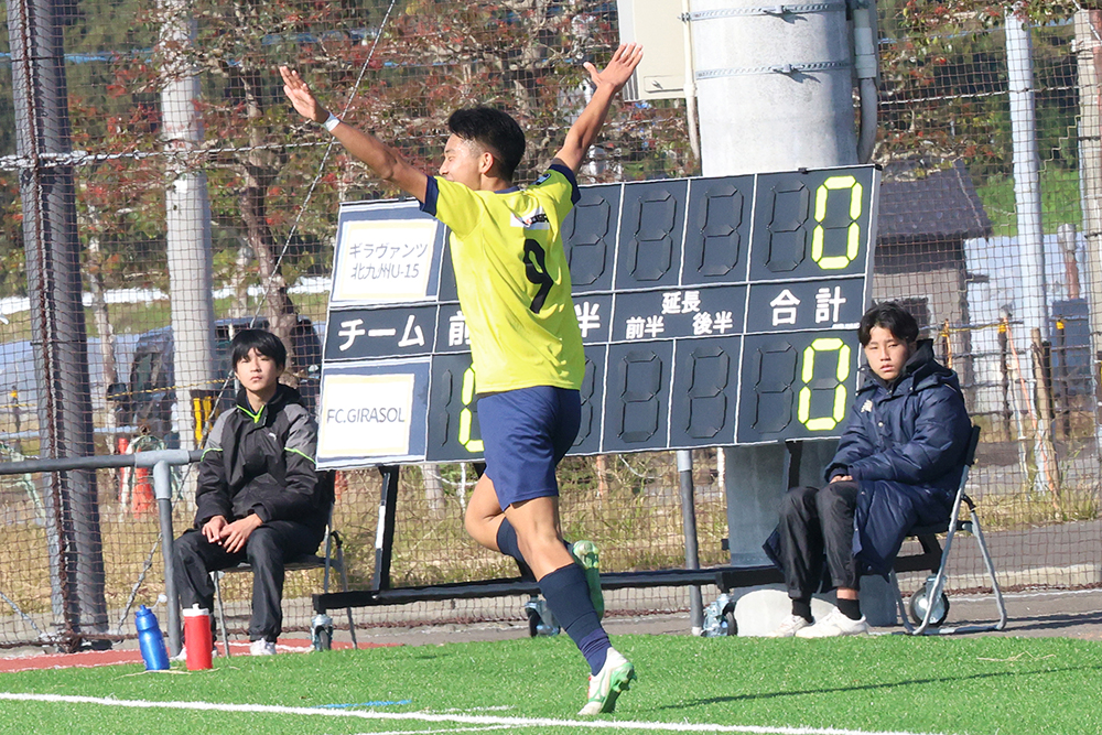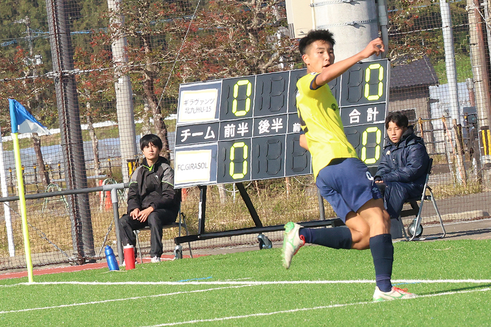 [大会名]KYFA第16回九州各県U-15サッカーリーグチャレンジ大会1回戦[場所]新富フットボールセンター[日時]11/29(土)10:00KO[対戦相手]ヒラソール[試合結果]ギラヴァンツ北九州U-15 3(2-0.1-0)0 ヒラソール得点者:三原・田代・金山