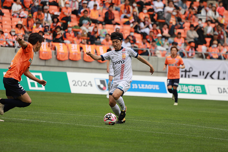 A:(矢田)旭さんがボランチにいる中で、自分と同じようなタイプ、同じような感覚を持ってる選手でやりやすかったです。(永井)龍くんがボールを持った時には近場にいればこぼれてくるだろうと思っていたので、そこで狙っていい形がこぼれてきたので、シュートを打った感じですね。