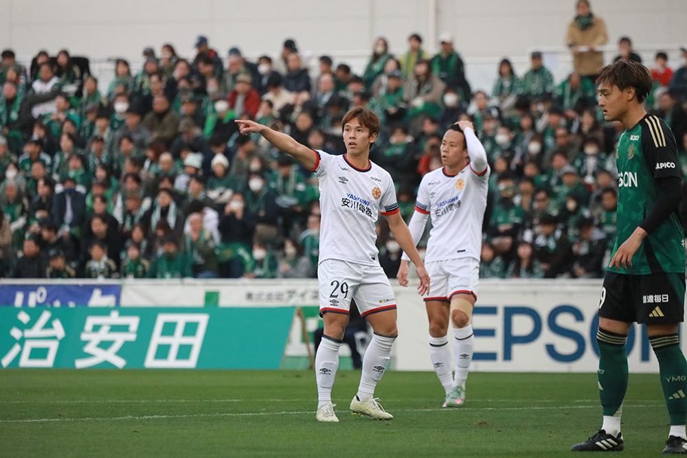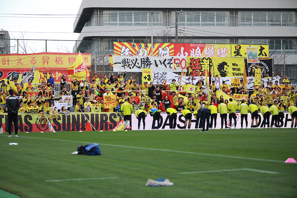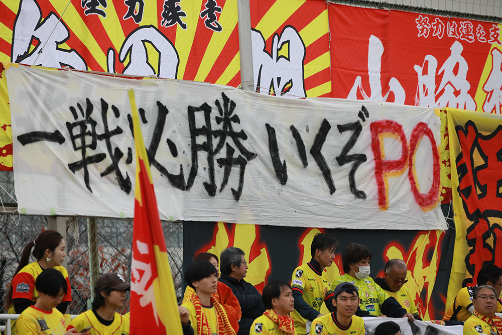 A:選手全員で優勝を掲げて戦いましたが、達成することはできませんでした。ファン・サポーターの皆さんやスポンサーの皆さんに本当に申し訳なく思います。今後のサッカー人生につなげなければいけないと思います。(町田選手)也真人くんを昇格プレーオフという舞台でプレーする機会をつくれなかったのは本当に悔しいです。個人としては成長できた部分もありますが、課題もまだまだ多くあるので、もっとチームを勝たせられる選手になれるように取り組んでいきます。どんな時も熱いサポートをしてくださったサポーターの皆さんに改めて感謝を伝えたいです。本当にありがとうございました。
