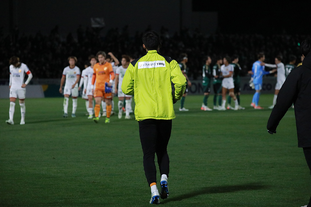 A: 監督から「1つのプレーが人生を変えることもあれば、一生後悔として残ることもある」と言われました。その言葉が自分の中ですごく印象に残りました。今日だけでなくて、この1シーズンを通して自分はその気持ちでやれていたのかを考えるきっかけになりました。今日の悔しさはギラヴァンツ北九州にとっても自分自身にとってもかけがえのない経験です。この経験があったから今の自分があると思えるようにしていきたいです。監督から下を向かずに前を向き続けろと言葉をかけてもらいましたが、この経験をどう活かすかが今後非常に大事だと感じます。