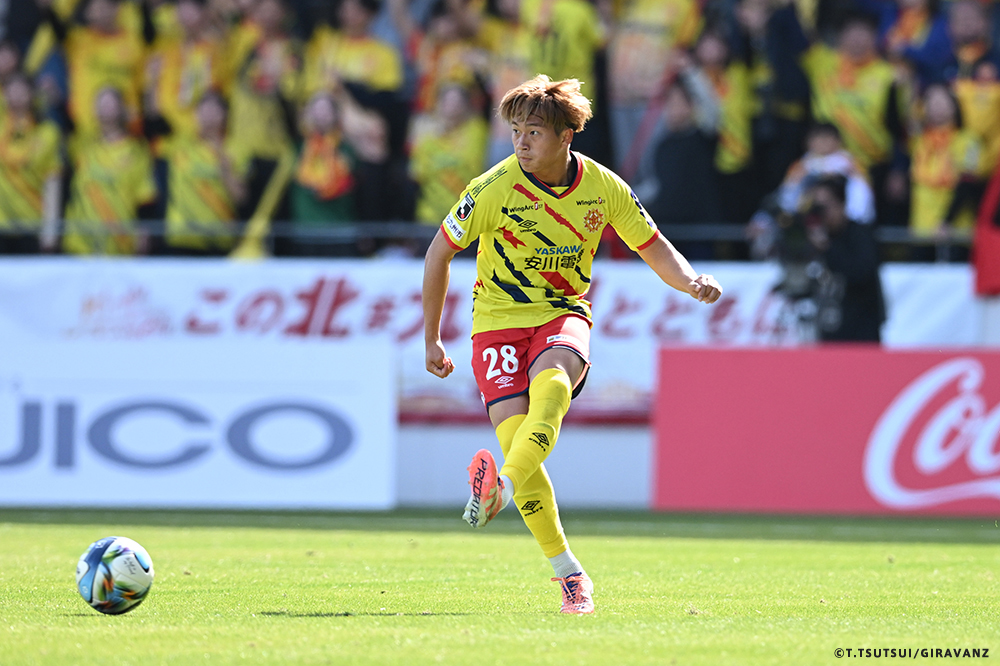 A:決めるしかないという状況だったので、髙橋大悟選手が入った時点で、あそこは常に狙っていましたし、僕が思ったところにボールを出してくれたので、身体ごと押し込みました。(初ゴールを取ったが)悔しいです。前半にビッグチャンスは2回もある中で僕が決めていれば勝てた試合なので、悔しい。練習するしかないです。