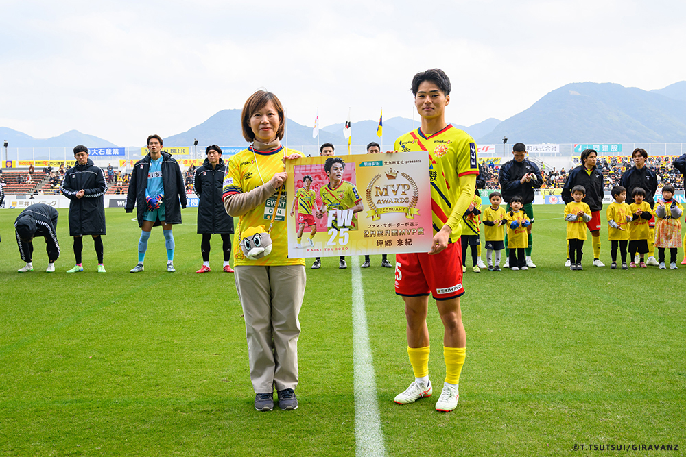 A:坪郷が続けて取れたのは大きいことだと思います。彼は将来クラブを背負っていく、ここからさらに羽ばたいていく選手になると思うので、すごくいい形でスタートできていると思います。ただ、それをチーム全体で押し上げてあげられないことにもどかしさを感じていますし、それは僕の責任だと感じています。2つ目の得点についても、取ってほしい選手が取ったので、チームに勢いがつくかなと思います。ただ両方ともセットプレーからの得点なので、オープンプレーの中でフォワードが点を取ることはすごく大事だと思います。フォワードが点を取れるようにしていくために、もう一度取り組んでいかなければいけません。