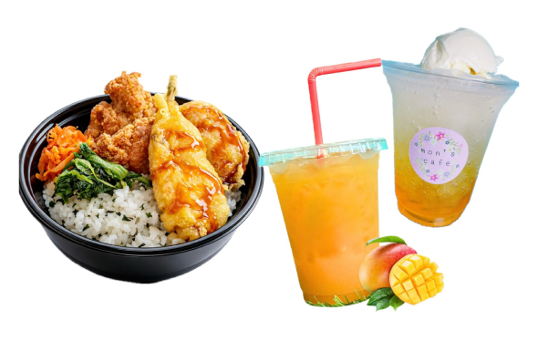 【山口を喰らいつくせ!】山口丼はフグの天ぷら、萩のしそわかめご飯で、山口てんこもり!また、レノファカラーのマンゴージュース、マンゴーフロート500円もあり!