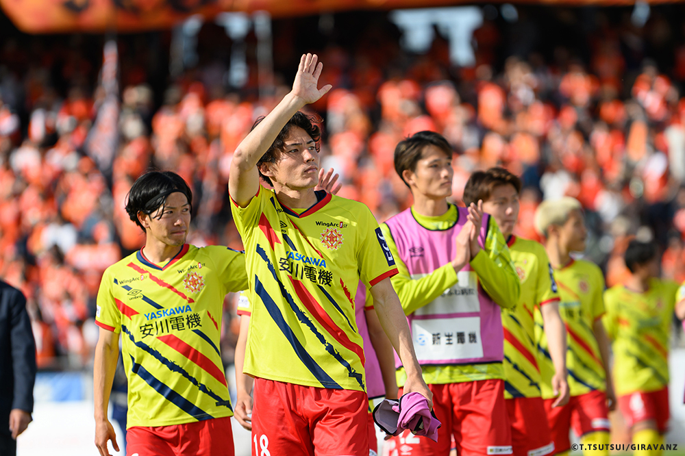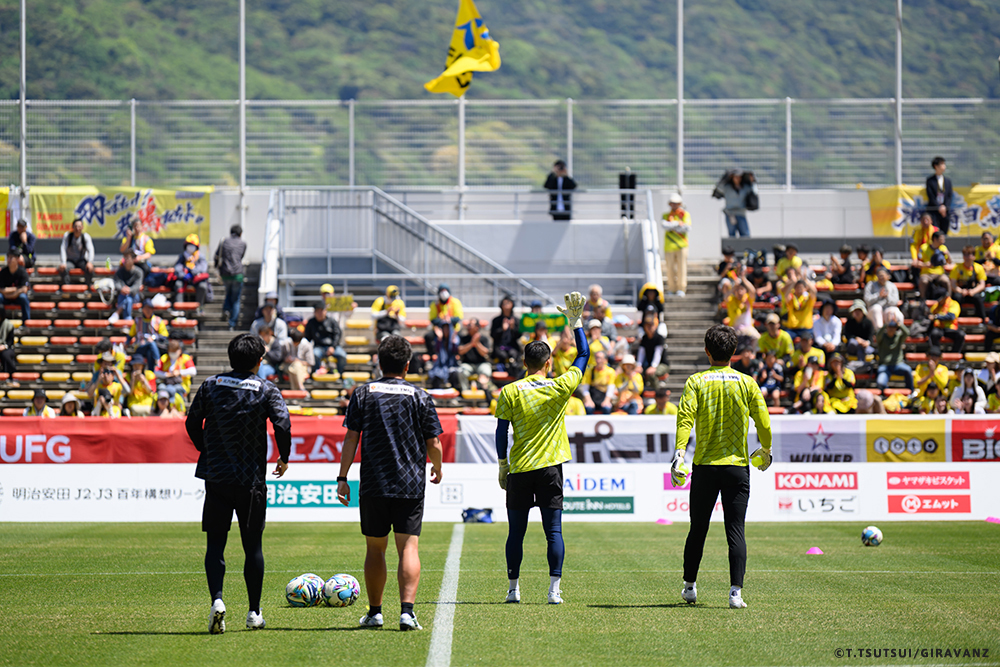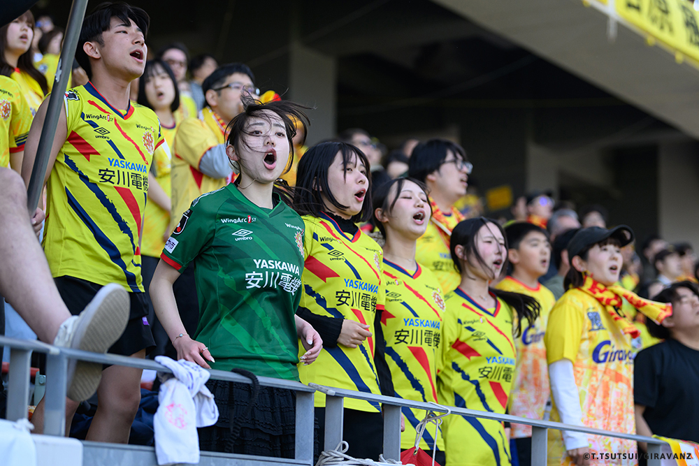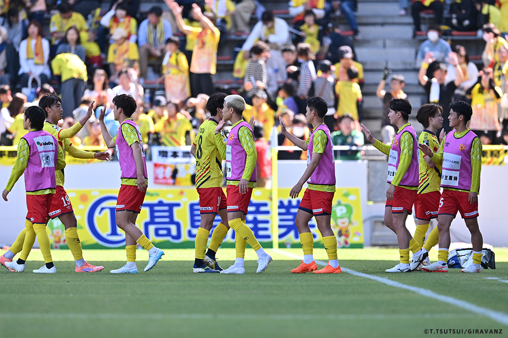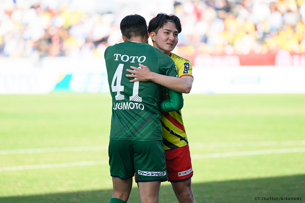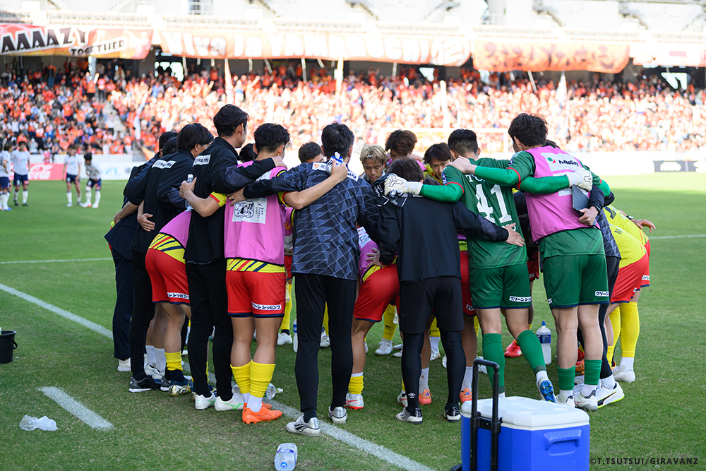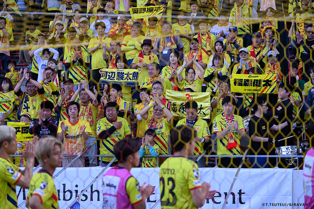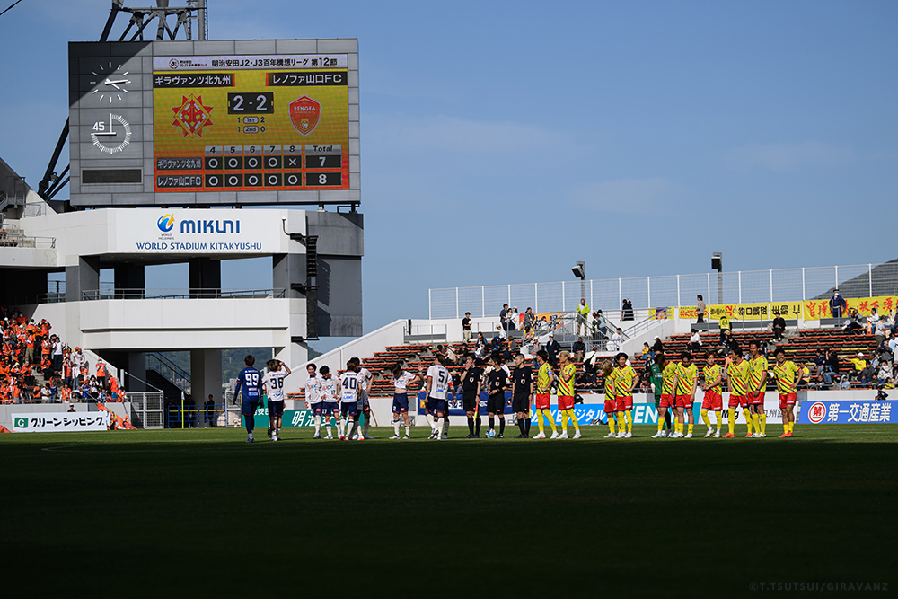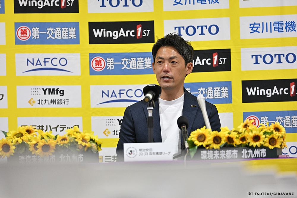 A:鳥栖とやる試合も違うし、今日の山口との試合も違うし、大分とやる試合も違うし、そういうのはすごく感じていますね。前回僕らがすごく状態が悪い時に山口でやって、お客さんがたくさん来てくれました。でももっともっと来てもらわなければいけないし、もっともっと見たいと思う人を増やさなければいけない。それは僕らの仕事です。今日も山口の方はゴール裏にあれだけ多くの方が入って圧を感じさせようとしてきました。我々のゴール裏もそれに対応していましたが、メイン・バックも含めてギラヴァンツ北九州で染めなければいけない。それをやった上で、このダービーの本当の楽しさみたいなものが出てくるのかなと思うと、やっぱり僕らまだまだだなというところと、もっとお客さんが呼べるような集団、ゲームをしていかなければいけません。そういうところを改めて感じる、100年構想リーグだと思います。