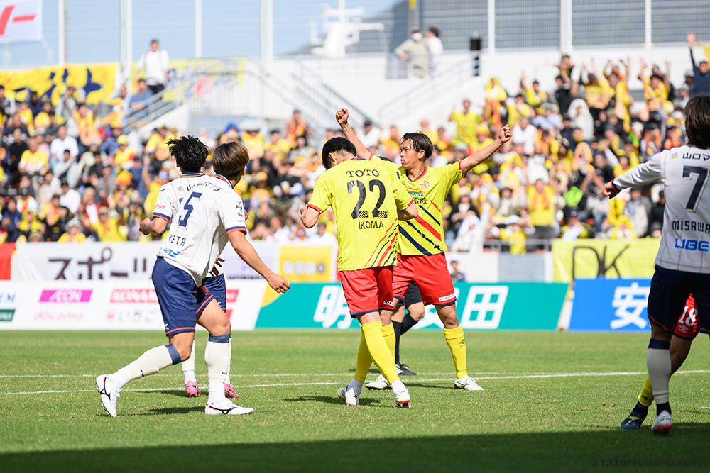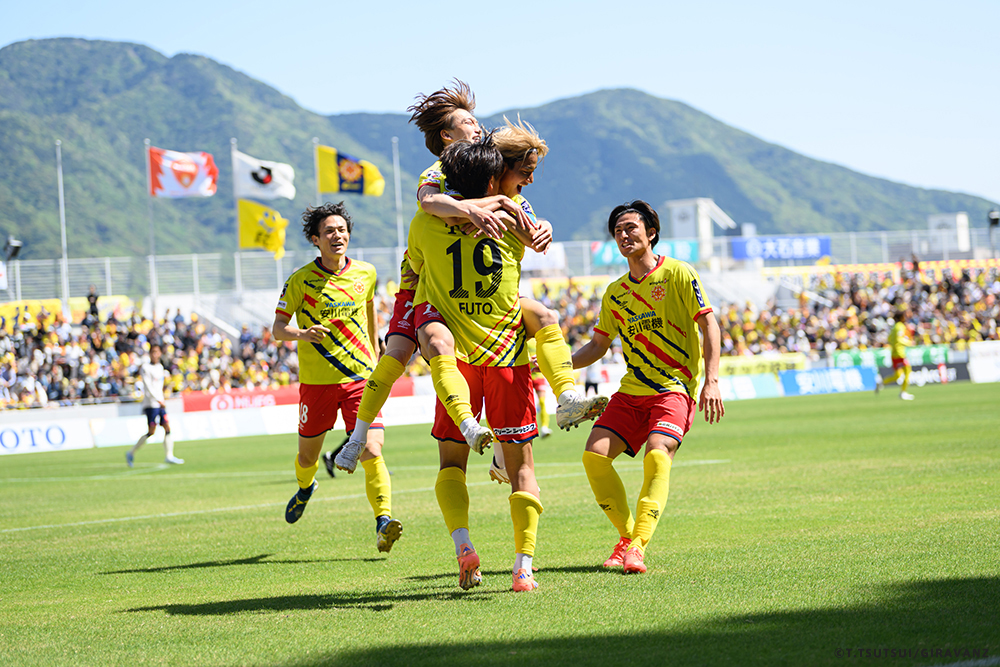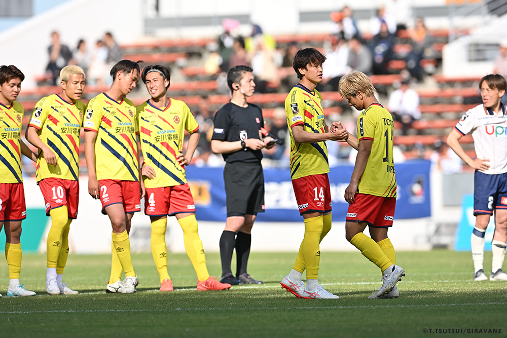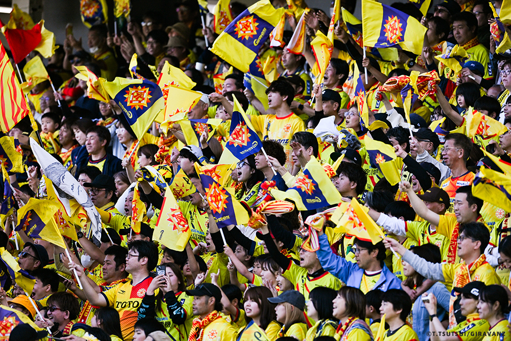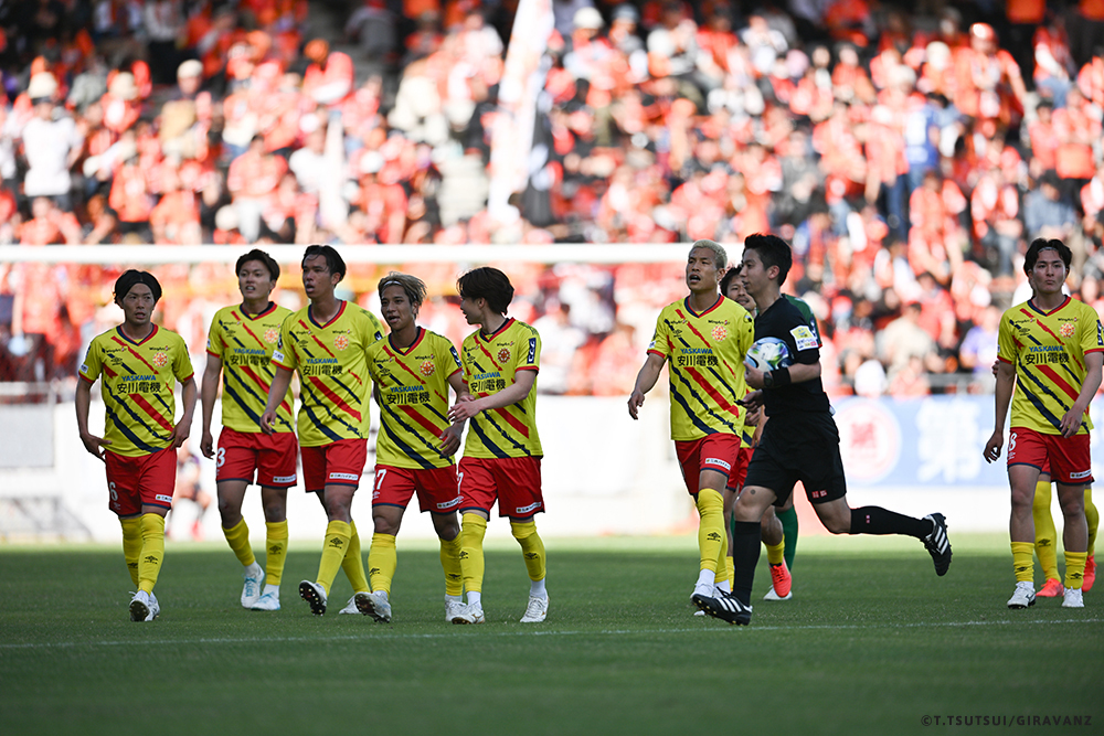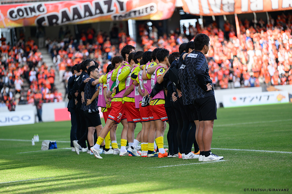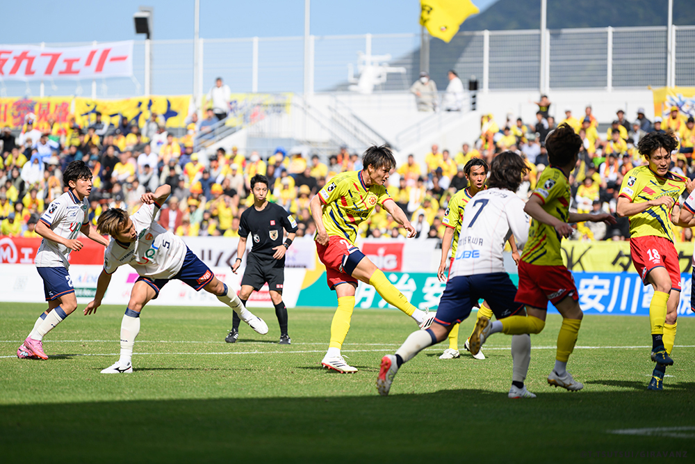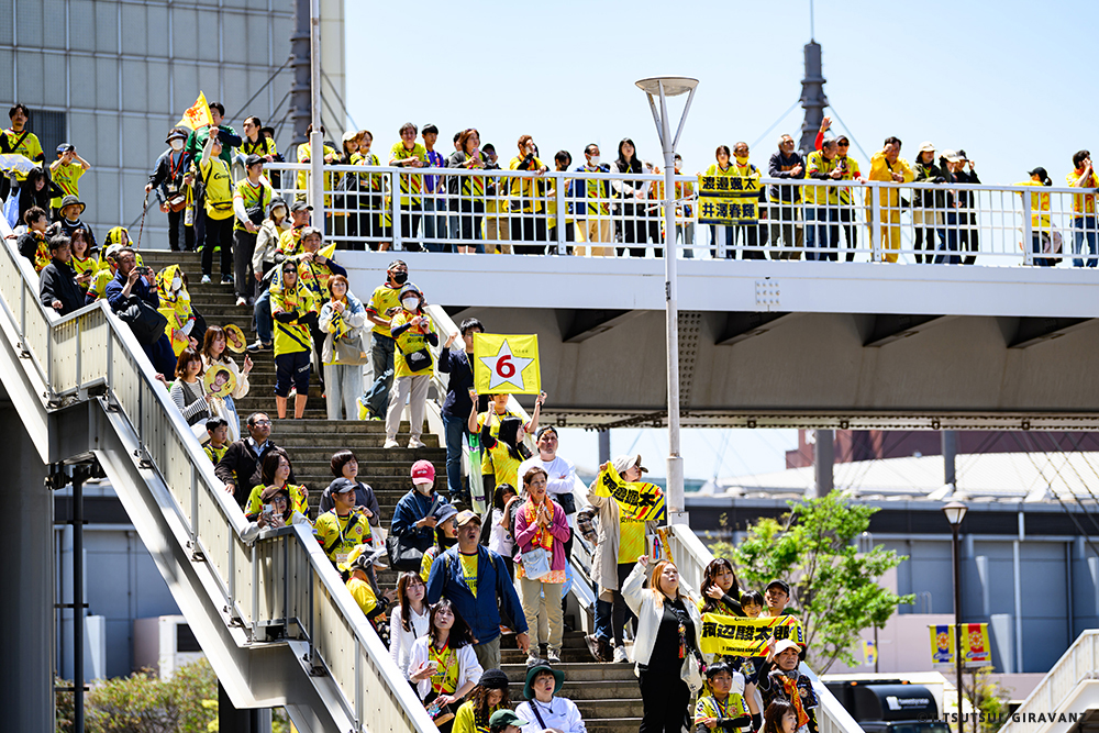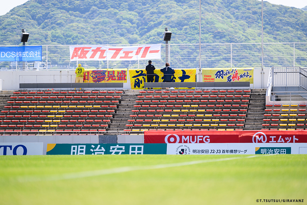 A:鳥栖とやる試合も違うし、今日の山口との試合も違うし、大分とやる試合も違うし、そういうのはすごく感じていますね。前回僕らがすごく状態が悪い時に山口でやって、お客さんがたくさん来てくれました。でももっともっと来てもらわなければいけないし、もっともっと見たいと思う人を増やさなければいけない。それは僕らの仕事です。今日も山口の方はゴール裏にあれだけ多くの方が入って圧を感じさせようとしてきました。我々のゴール裏もそれに対応していましたが、メイン・バックも含めてギラヴァンツ北九州で染めなければいけない。それをやった上で、このダービーの本当の楽しさみたいなものが出てくるのかなと思うと、やっぱり僕らまだまだだなというところと、もっとお客さんが呼べるような集団、ゲームをしていかなければいけません。そういうところを改めて感じる、100年構想リーグだと思います。