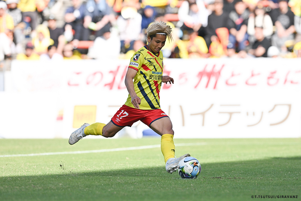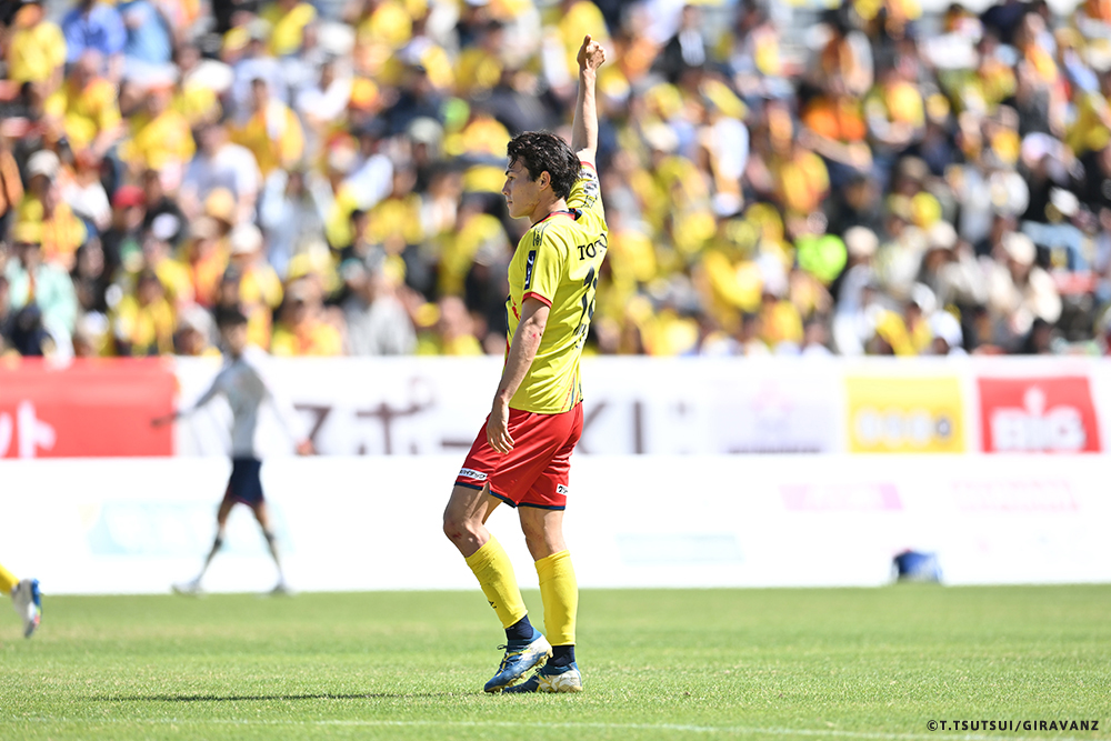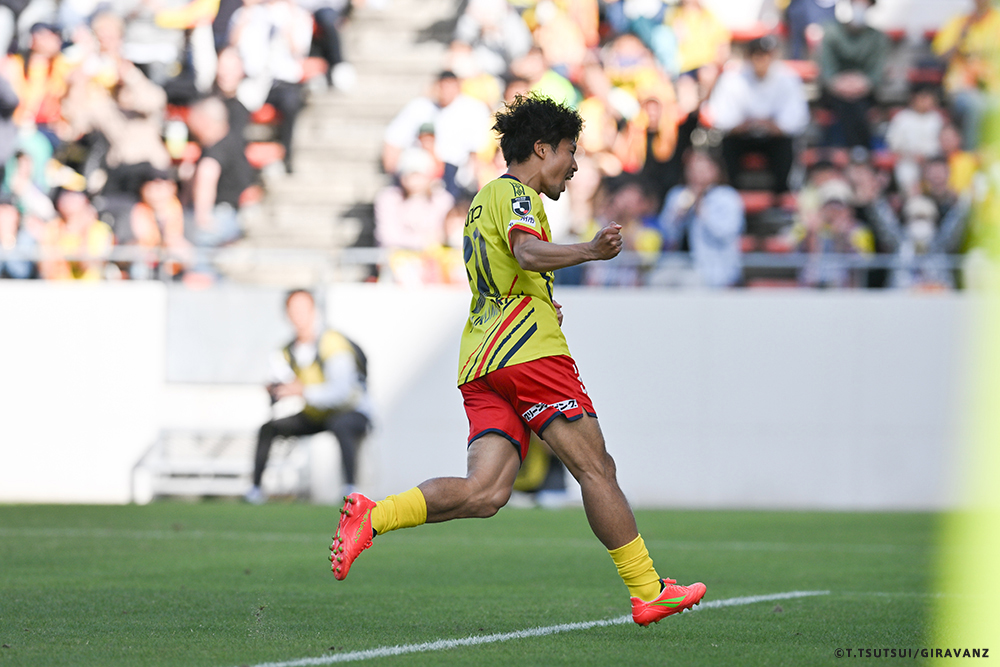 A:前回の山口戦から先発で使い続けてもらっていたので、早くゴールという結果を残したかった。これまでにもチャンスがありながら取り切れていなかったので、取れて本当にうれしかったので、ああいう喜び方になりました。