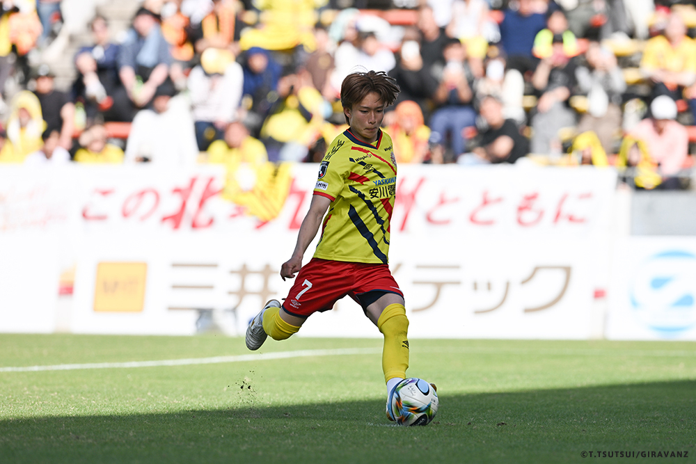 A:去年もウイングバックでプレーしていたときは、コーチングスタッフから常に逆サイドからのボールに対してはゴール前に入っていくように言われていて、それを今年も3バックになってから意識しているので、今日もしっかりポジションを取れていたので、ボールが来た時に慌てることなく、冷静に左足で押し込むことができました。