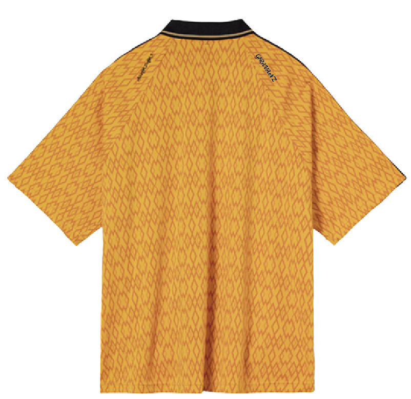 背面右肩に、左肩の「AWAY DAYS」のフォントを用いた「GIRAVANZ」を刺繍加工しています。(半袖シャツのみ)