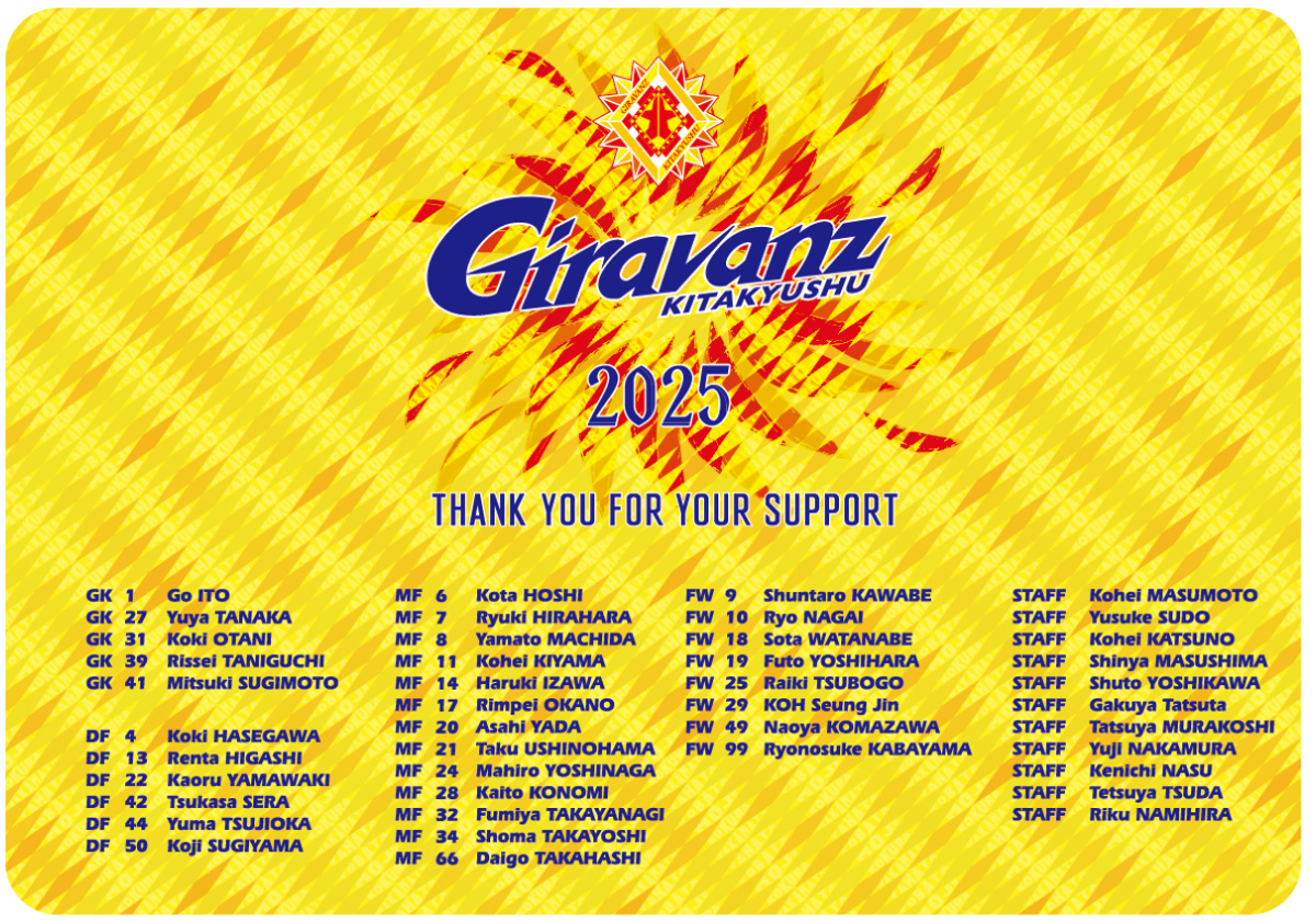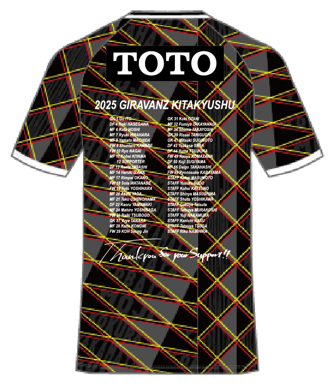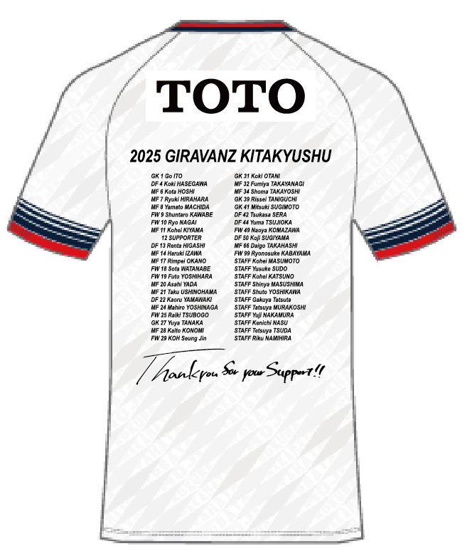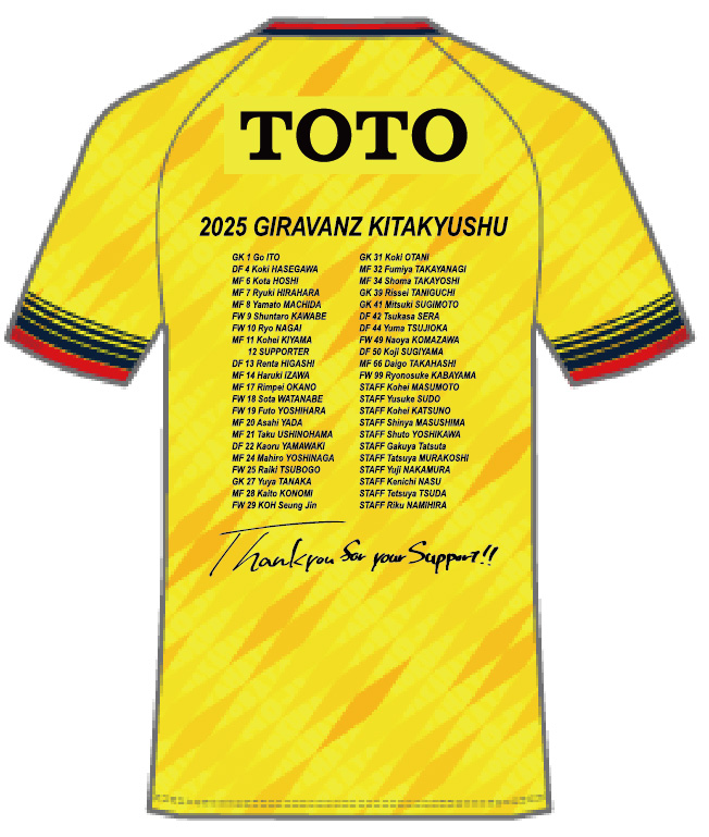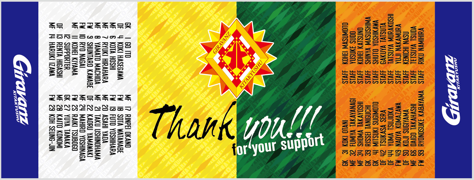 ※「Thank you for your support!!」の文字は、来シーズンも続投が決まった増本監督の直筆を昨年同様、基にしています。