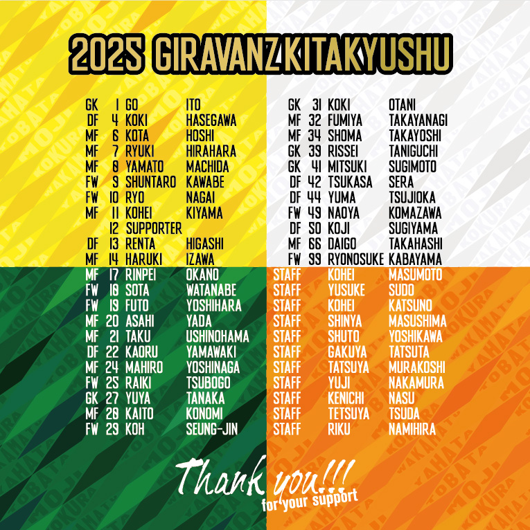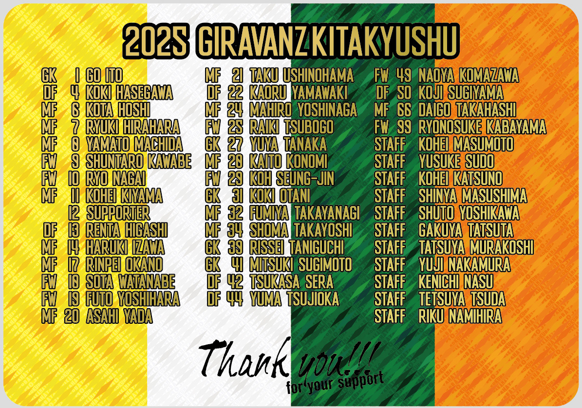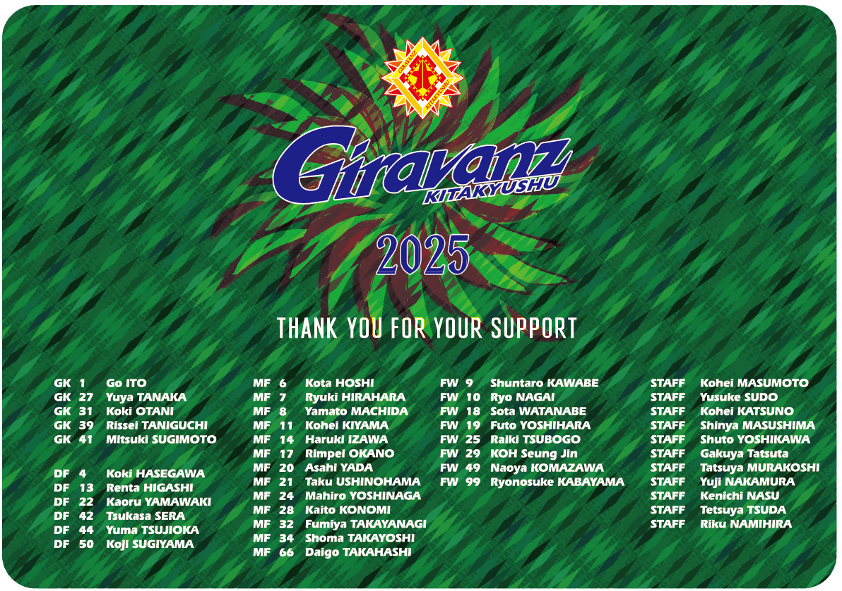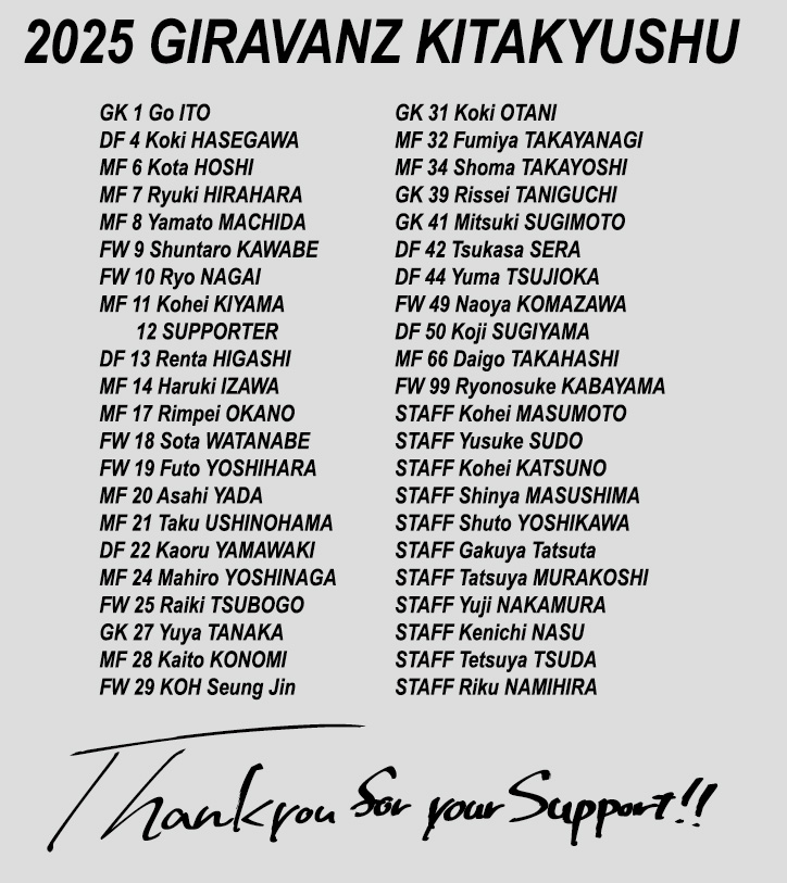 ※「Thank you for your support!!」の文字は、来シーズンも続投が決まった増本監督の直筆を昨年同様、基にしています。