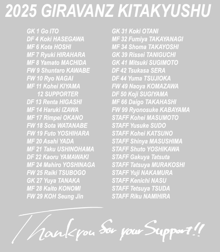 2025シーズンも共に戦ってくださったファン・サポーターの皆さまへの感謝の意を込め、12月27日(土)18:00より、「ThanksGoods」を受注販売致します。是非オンラインストアにお立ち寄りください。