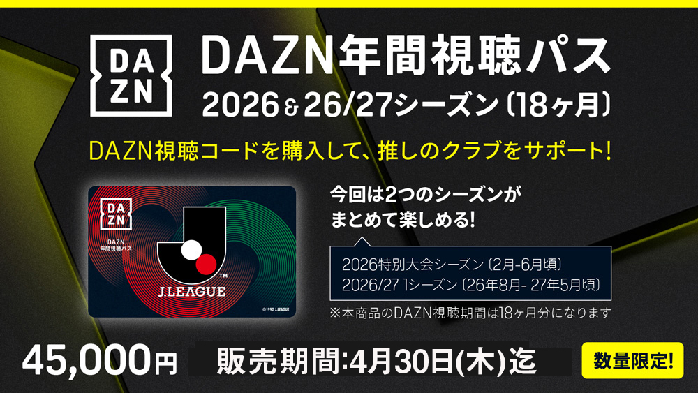 【4/30まで販売延長!】DAZN年間視聴パス2026 & 2026/27シーズン(18か月分)数量限定販売のお知らせ