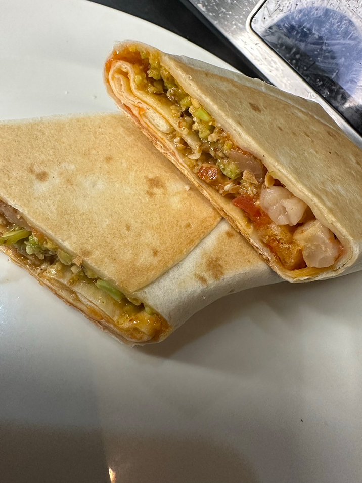 ベーコンや枝豆、燻製ナッツのペースト、トマトソースなどをトルティーヤで巻いて焼いたフィンガーフード。