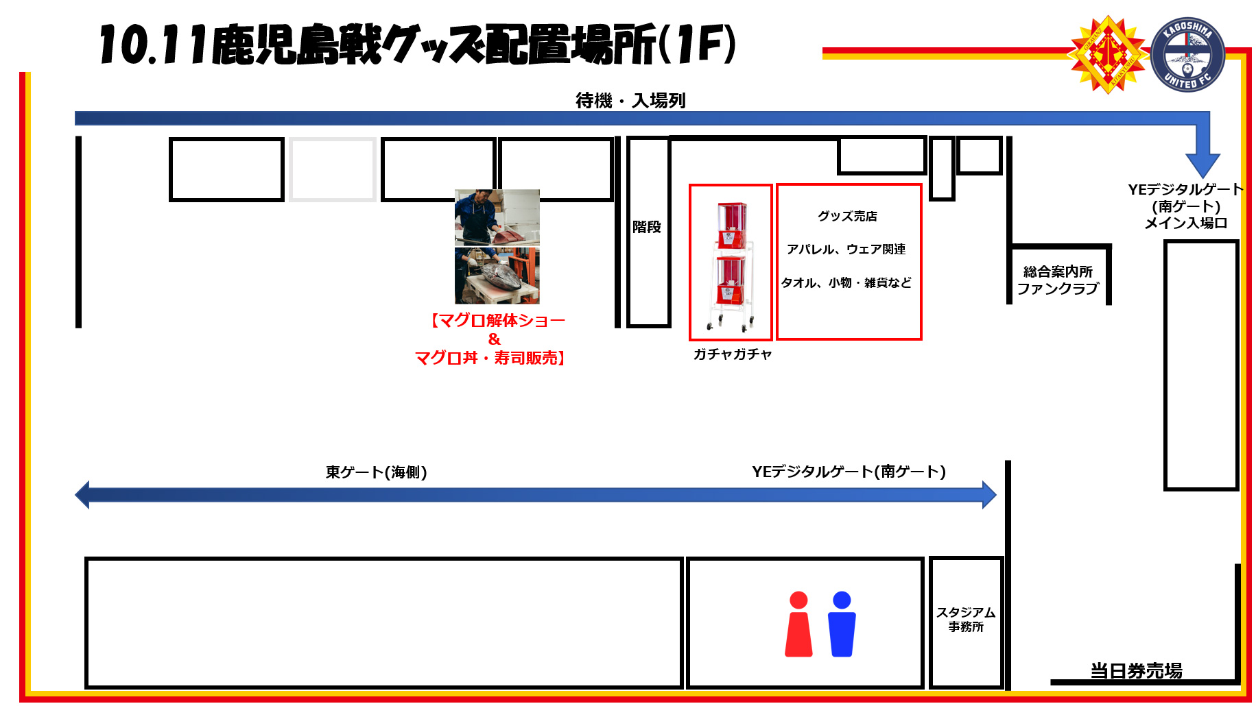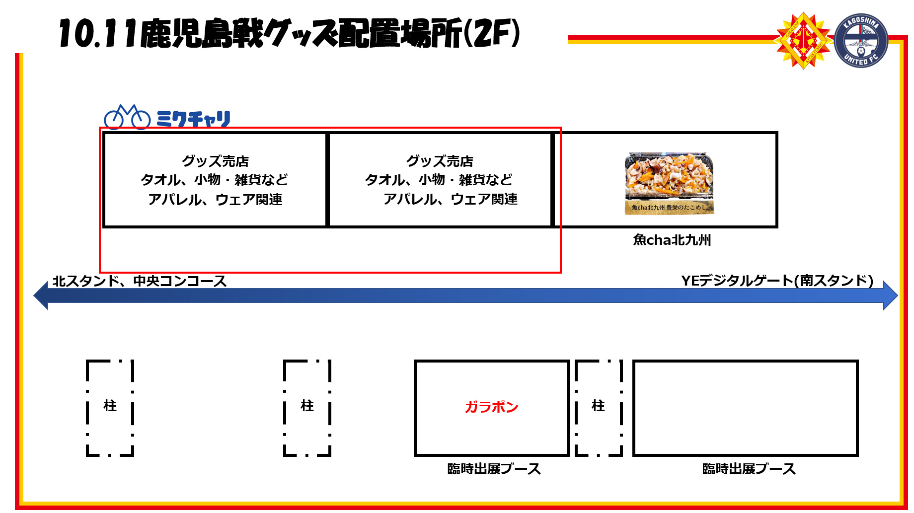 10月11日(土)vs鹿児島戦にて、1Fグッズ売店の配置が一部変更となります。