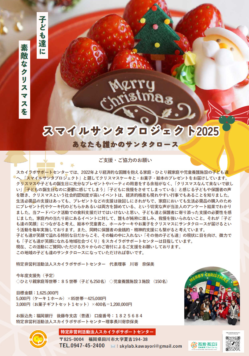 売上は全額、「NPO法人スカイラボサポートセンター」を通じて、スマイルサンタプロジェクト2025に寄付いたします。