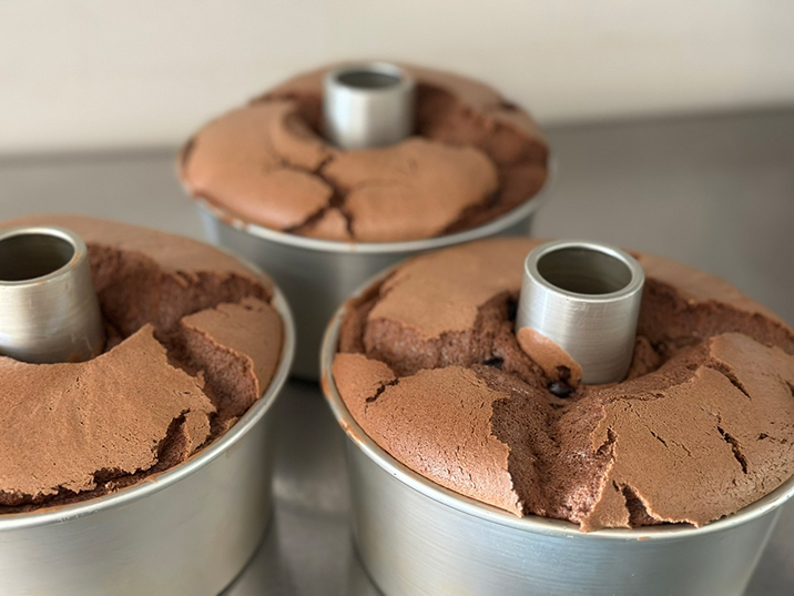 膨張剤は使わず卵の力だけで膨らませ、小麦粉を極力減らすことで、口に入れた時に軽くとろけるような食感に仕上げています。スタジアムマルシェに出店すると毎回売り切れる人気のシフォンケーキです。
