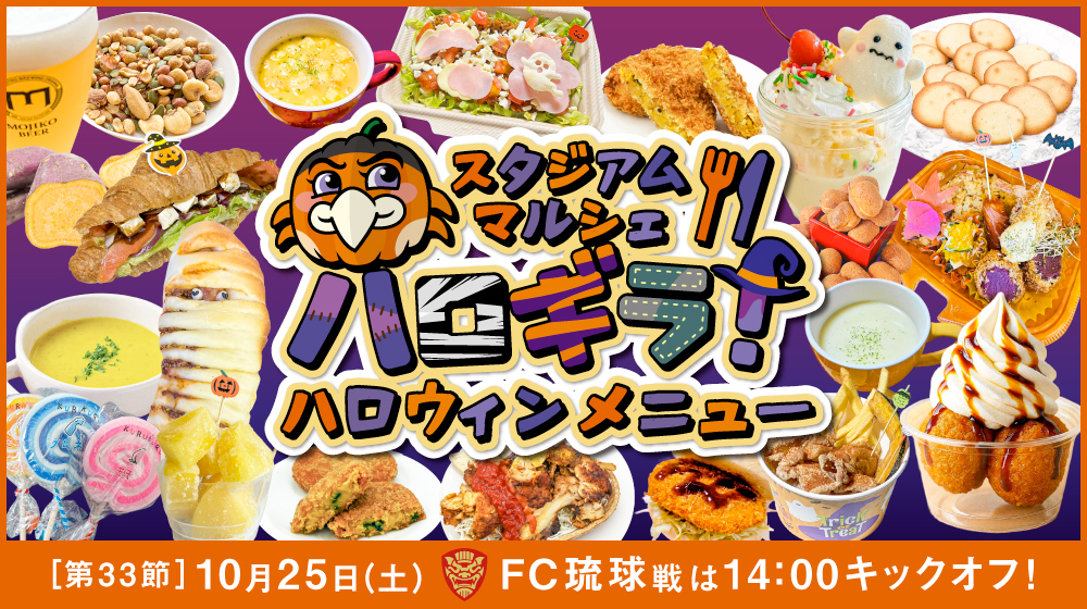 10月25日(土) J3リーグ第33節 FC琉球戦において、スタジアムマルシェ店舗にてハロウィンイベント「ハロギラメニュー」を販売いたします。