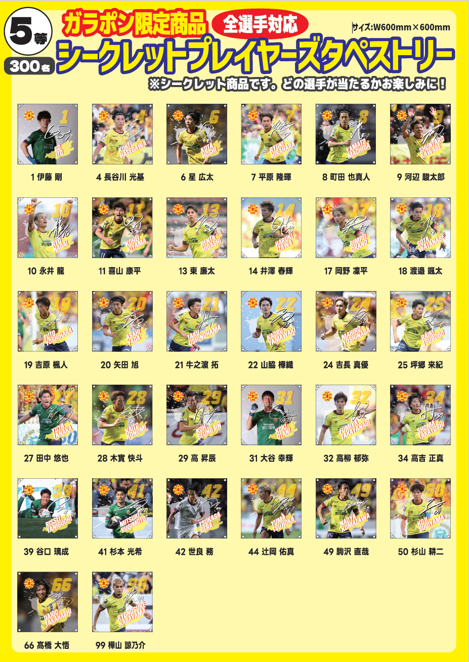 最も当たる確率が高い5等に全選手対応プレイヤーズタペストリーが登場!!
