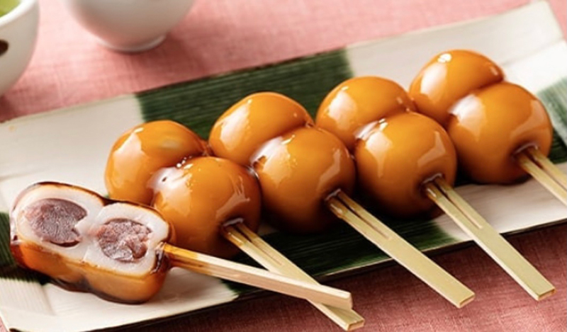 米粉でできた優しい甘みのふわふわ団子に 甘いしょうゆだれがたっぷり~! 焼きたての香ばしい風味もたまらない 一品。