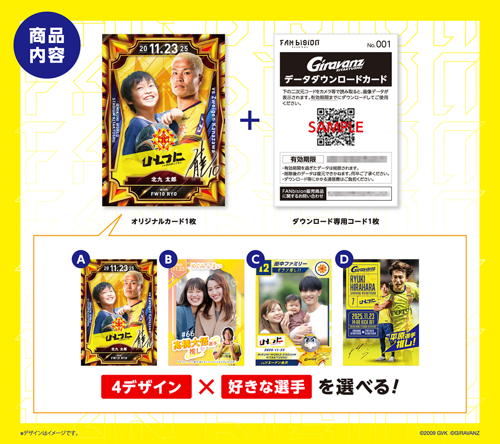 オリジナルカード(保護スリーブ付き)、カードの画像をダウンロードできる専用コードのセットです。