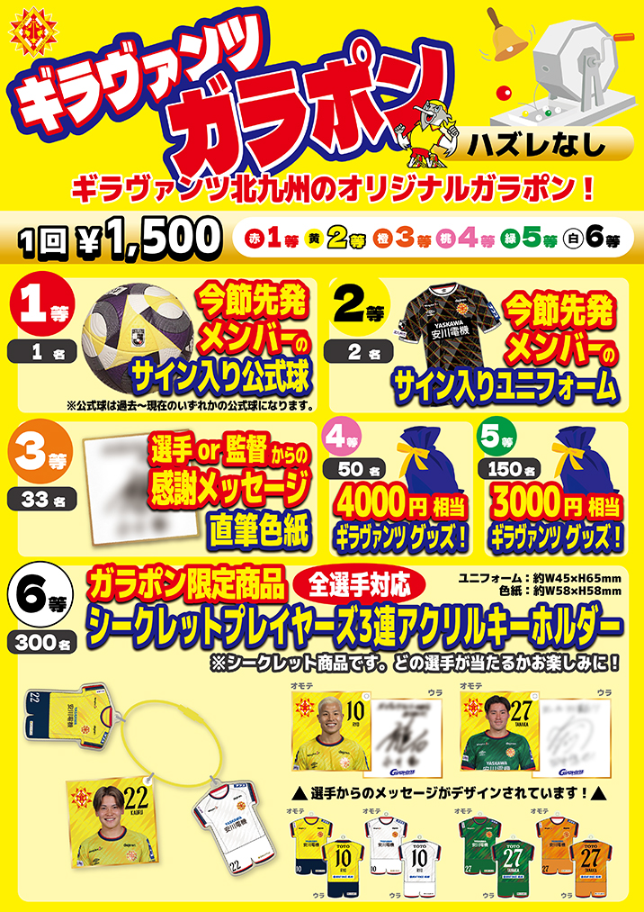 金沢戦(11月23日(日))にスタジアムにて、ハズレ無しのグッズイベント「ガラポン」を今節も実施致します。今節も前節同様、景品をグレードアップしています。是非ブースにお立ち寄りください。