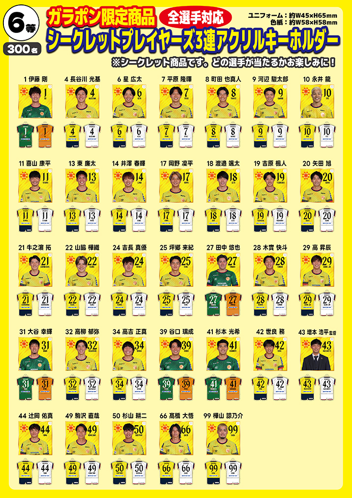 最も当たる確率が高い6等に全選手対応プレイヤーズ3連アクリルキーホルダーが登場!!
