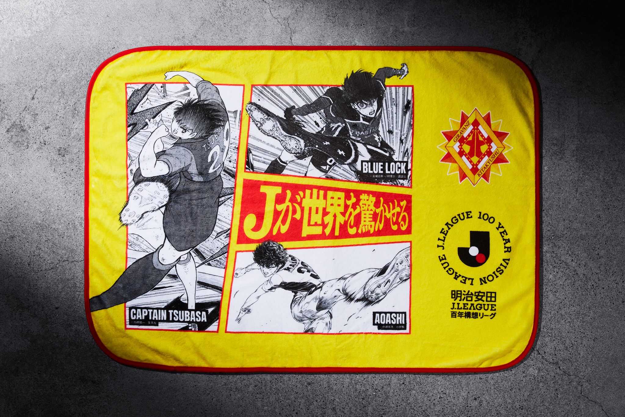ブランケットのデザインには、日本が世界に誇るサッカー漫画「キャプテン翼」をはじめ、近年国内外で絶大な人気を誇る「ブルーロック」「アオアシ」の3つの作品との史上初のトリプルコラボレーションが実現しました。