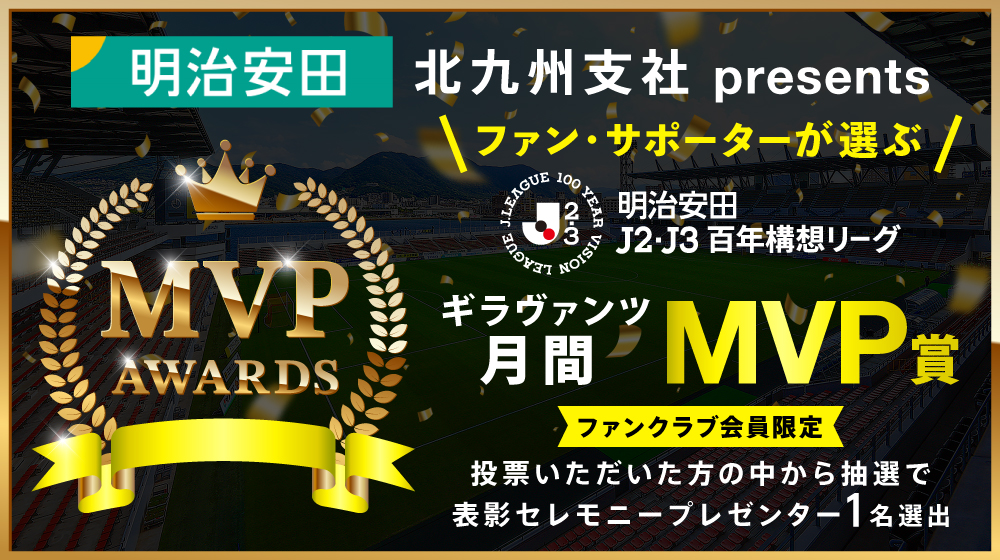 明治安田J2・J3百年構想リーグにおいて最も活躍した選手をファンサポーターの皆さまに選出いただき、『月間MVP賞』として表彰いたします。
