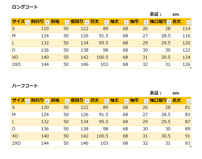 サイズ:S,M,L,O,XO,2XO