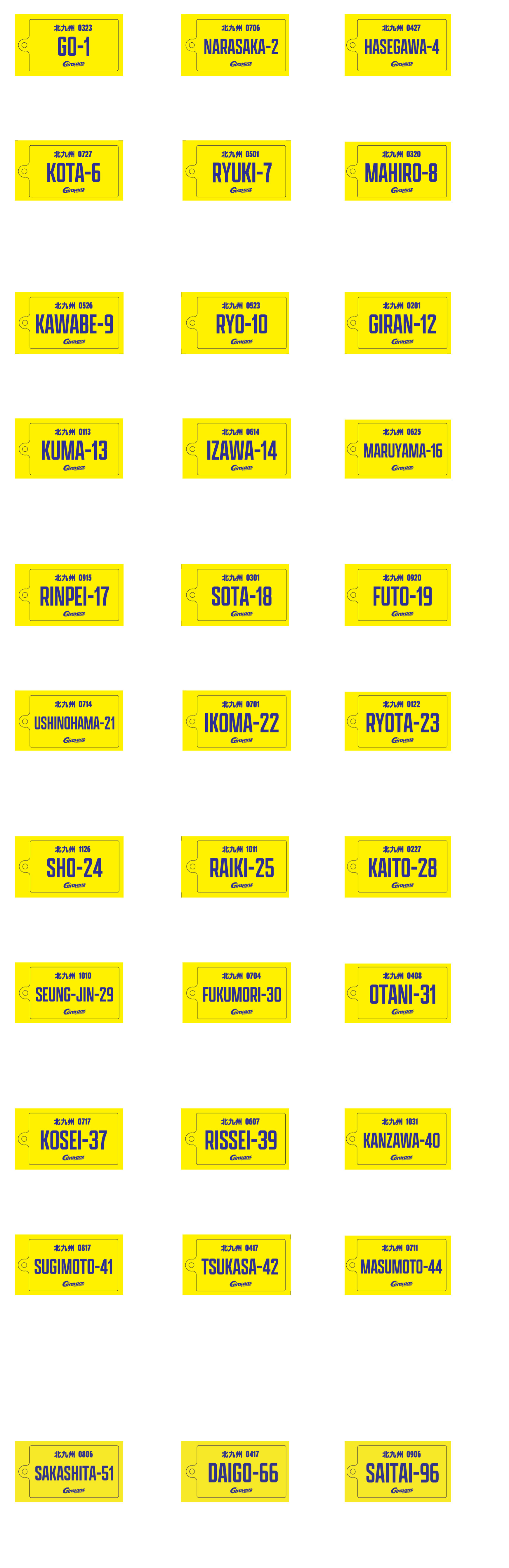 ※12番は「KITAKYUSHU」のネームです。