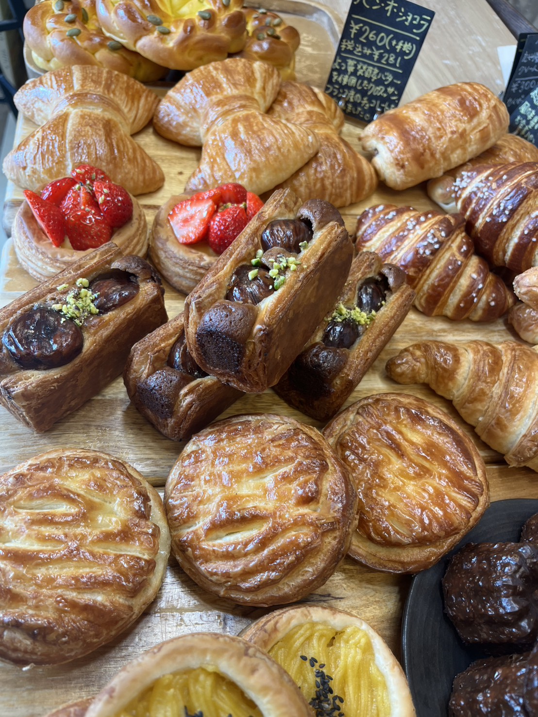 かねすえ本舗の明太子で作ったソースを使用した「明太ドイツ」や自家製のリンゴフィリングを使用したクロワッサンの「アップルパイ」、あまおうを自家製のあんこと求肥でサンドした「あまおう大福サンド」など多数あります。