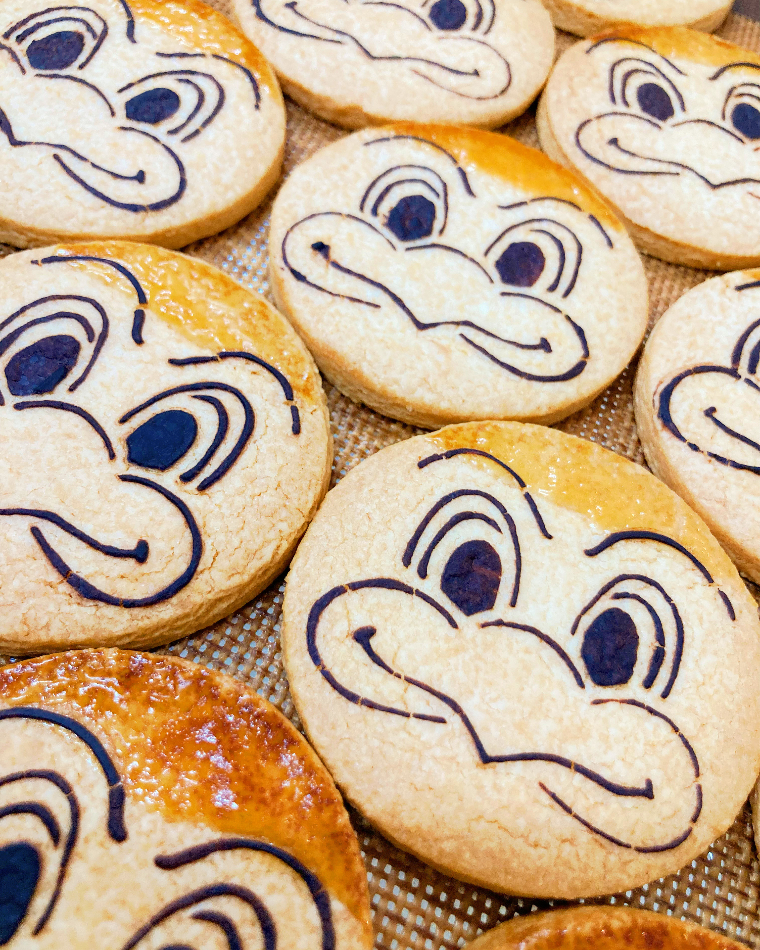 新鮮でおいしい材料にこだわったバター薫シンプルなクッキーにココアでギランの顔を描きました。