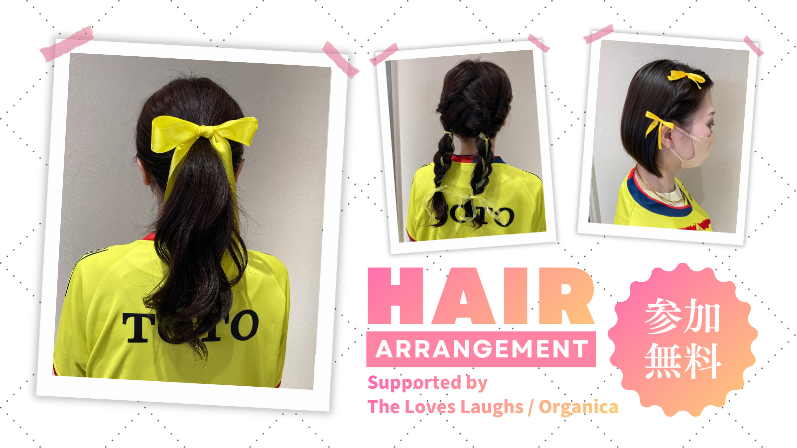 いつもより少しおしゃれをして、試合観戦を楽しみませんか?リボンなども会場でご準備しますので、手ぶらで・お気軽に、プロの美容師からヘアアレンジを受けることができます!