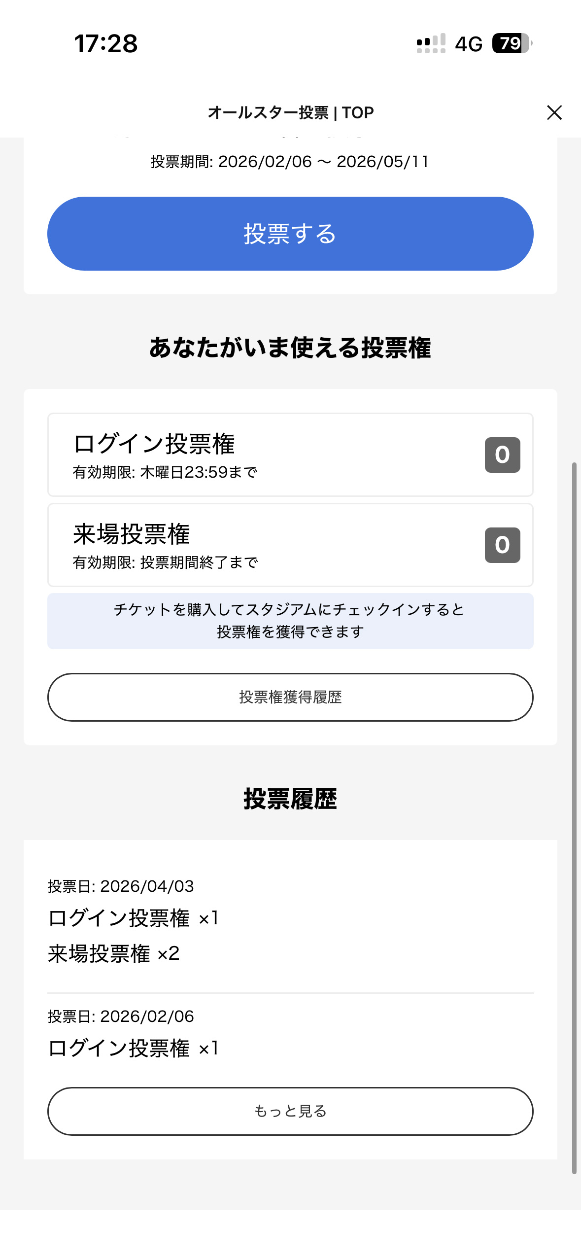 投票完了画面もしくは投票履歴を提示ください。投票完了をスタッフが確認させていただきます。