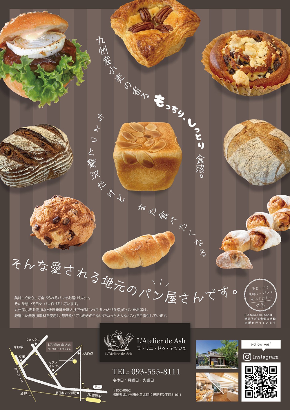 九州小麦を高加水・低温発酵。厳選した無添加素材を使用し、毎日食べても飽きのこない『ちょっと大人なパン』
