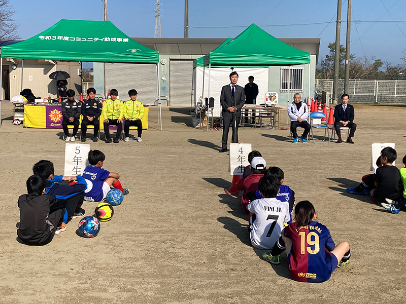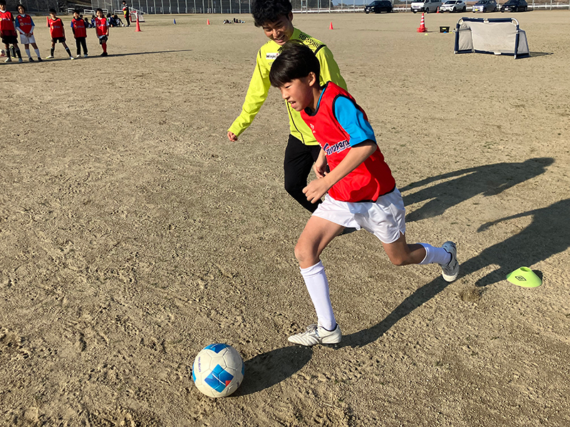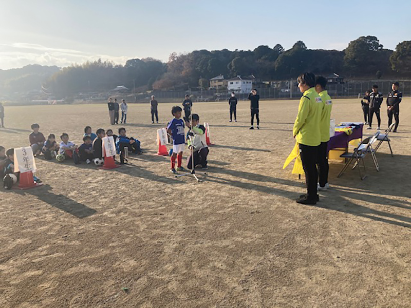 豊前市内の小学生22名が参加し、冬空の下、元気いっぱいにボールを追いかけました。