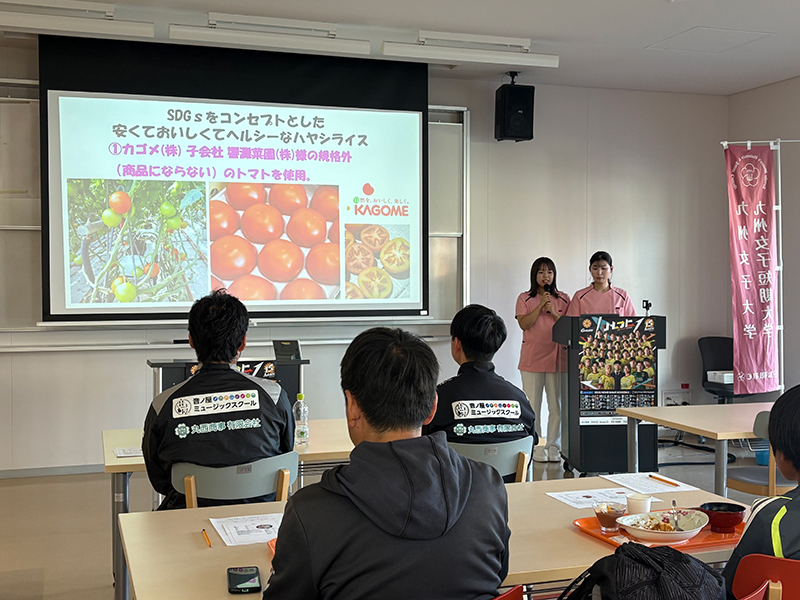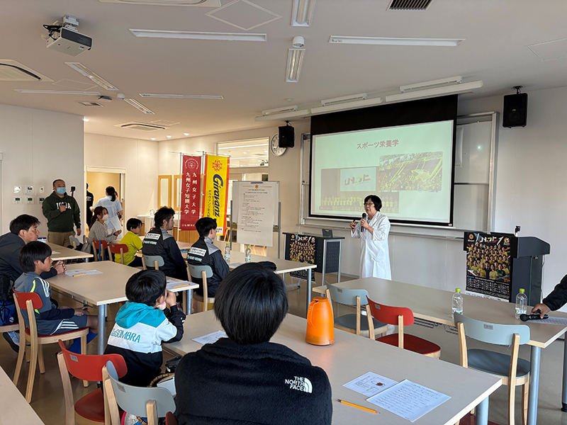 九州女子大学 巴美樹教授による「小学生アスリートの栄養の取り方」に関する講義や、栄養学科学生の皆様より、今回参加した親子へ栄養に考慮した食事を提供いただきました。