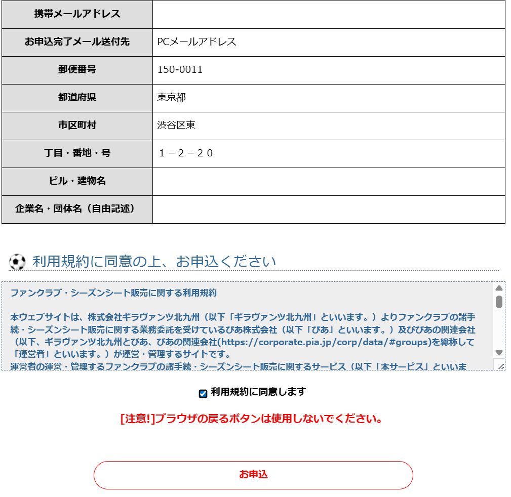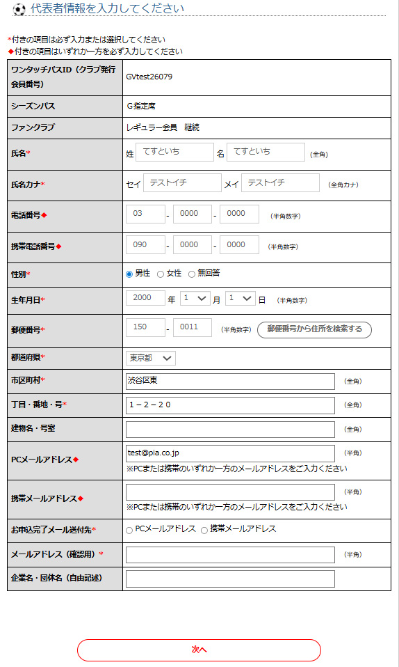 ※JリーグIDにログイン状態で当ページに進みますと、個人情報が自動反映されております。JリーグIDを事前にご取得される際に、正確にご入力頂けますとスムーズにご入会頂けます。