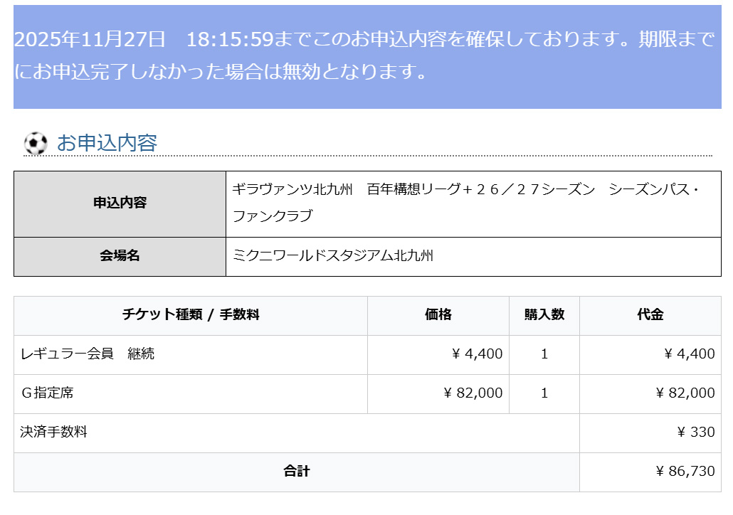 ※指定席席番継続のご選択の方は「シーズンパス」欄はG指定席固定となります。