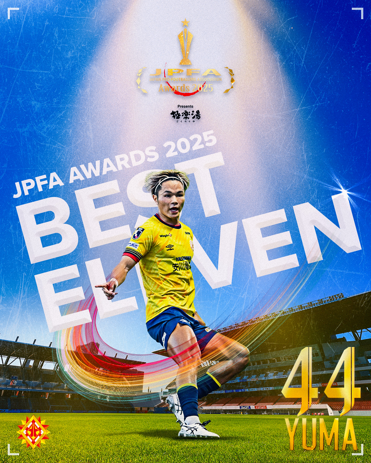 この度、辻岡佑真選手が2025シーズンに活躍したプロサッカー選手を表彰する「極楽湯 presents JPFAアワード2025」J3ベストイレブンに選出されましたので、お知らせいたします。