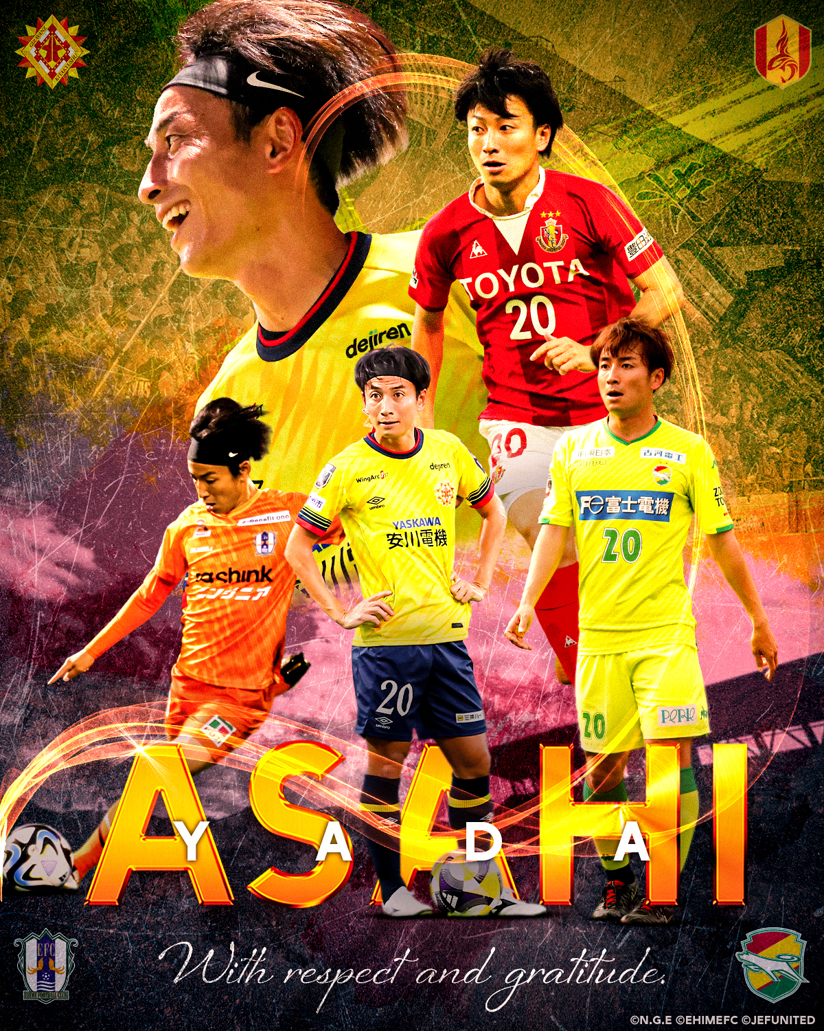 名古屋グランパス、ジェフユナイテッド市原・千葉、愛媛FC、ギラヴァンツ北九州と、プロサッカー選手として12年間、かけがえのない時間を過ごさせていただきました。