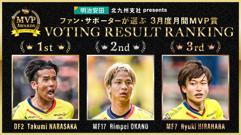 3月度「ギラヴァンツ月間MVP賞」受賞選手決定